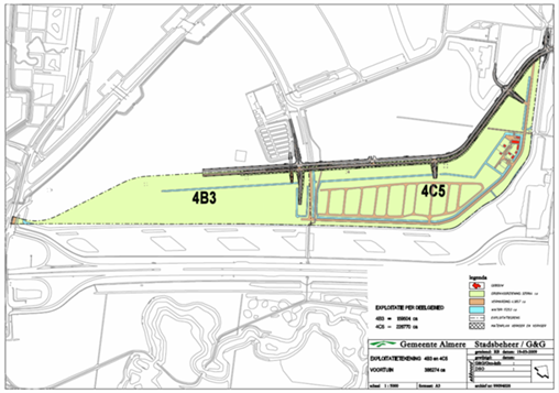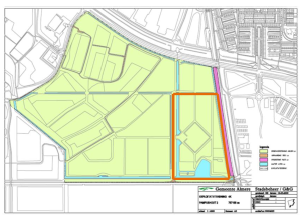 Het betreft een kantorenlocatie aan de rand van het stadscentrum van de gemeente Almere. Uit het marktonderzoek blijkt is er op korte- en midden lange termijn geen behoefte aan grootschalige kantorenlocaties. Op korte termijn zal een deel van de grond in exploitatie worden genomen voor de realisatie van een supermarkt en woningbouw. Er is geen voorziening benodigd, de oorspronkelijke boekwaarde is positief en derhalve lager dan de landbouwwaarde.