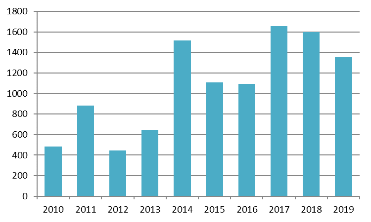 Gerealiseerde grondverkoop vanuit grondexploitaties woningbouw 2010-2019