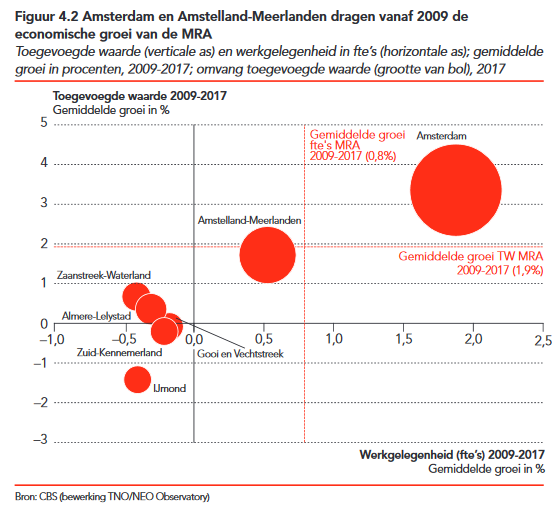Amsterdam en Amstelland-Meerlanden dragen vanaf 2009 de economische groei van de MRA