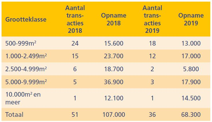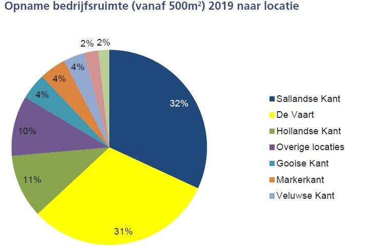 In 2019 lag de opname van bedrijfsruimte met 68.000 m2 ver boven het langjarig gemiddelde van 40.000 m2 in Almere. Dit vond vooral plaats op bedrijventerrein de Vaart en Sallandsekant.