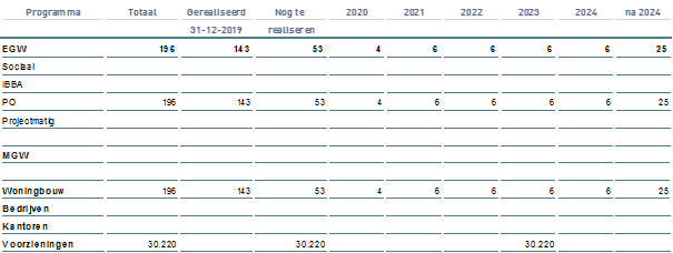 NB. (woningbouw in aantallen, bedrijven in m 2 ., kantoren in m² bvo, voorzieningen in m² bvo)