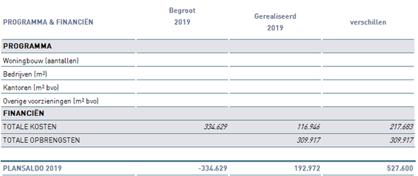 In 2019 waren geen grondverkoop opbrengsten begroot. De belangrijkste reden van het afwijken van de begroting is dat er een reserveringsvergoeding is ontvangen.