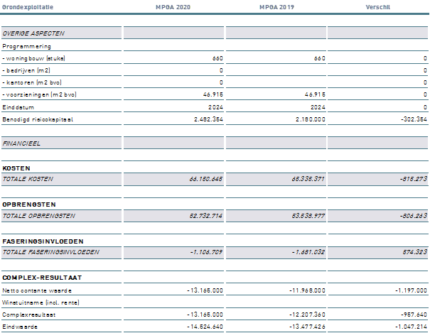 In dit hoofdstuk worden de belangrijke verschillen tussen de grondexploitatie MPGA 2020 en 2019 op hoofdlijnen toegelicht.