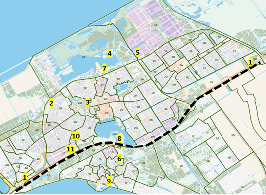 In de plankaart zijn de deelplannen weergegeven als exploitatielocaties van de grondexploitatie.