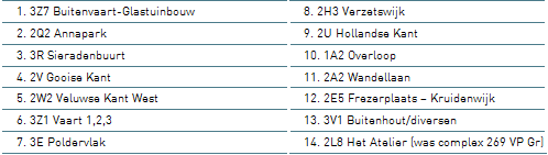 Het plan VP-Klein is de verzamelgrondexploitatie van de volgende kleine ontwikkelingen en uitgiftes: