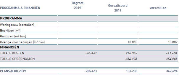 Er waren in 2019 geen opbrengsten begroot. Er is sprake van een afwijking van € 0,35 mln. voordelig ten opzichte van de begroting. De belangrijkste reden van het afwijken van de begroting is het intern overdragen van de twee kavels aan afdeling Sport.