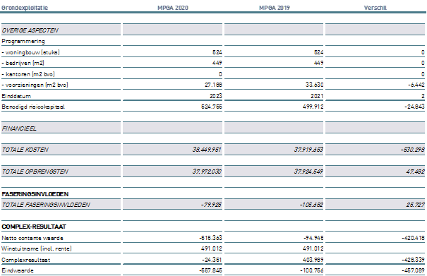 In dit hoofdstuk worden de belangrijke verschillen tussen de grondexploitatie MPGA 2020 en 2019 op hoofdlijnen toegelicht.