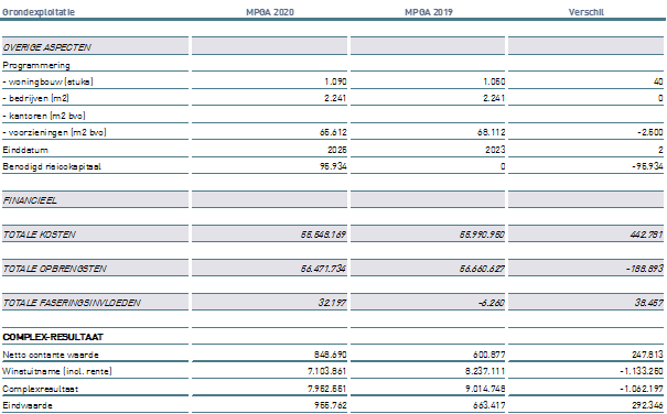 In dit hoofdstuk worden de belangrijke verschillen tussen de grondexploitatie MPGA 2020 en MPGA 2019 op hoofdlijnen toegelicht.
