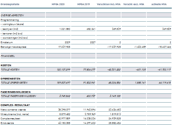 In dit hoofdstuk worden de belangrijke verschillen tussen de grondexploitatie MPGA 2020 en 2019 op hoofdlijnen toegelicht.