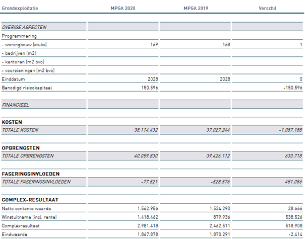 In dit hoofdstuk worden de belangrijke verschillen tussen de grondexploitatie MPGA 2020 en 2019 op hoofdlijnen toegelicht.