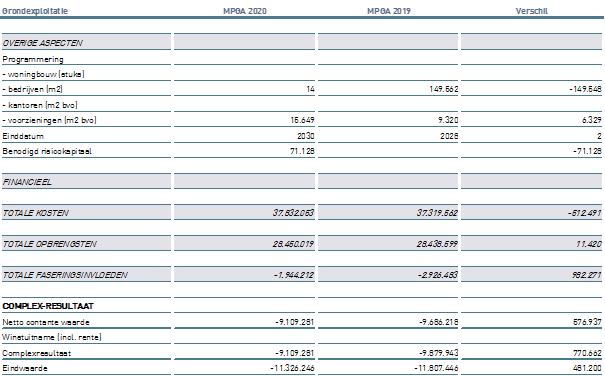 In dit hoofdstuk worden de belangrijke verschillen tussen de grondexploitatie MPGA 2020 en 2019 op hoofdlijnen toegelicht.