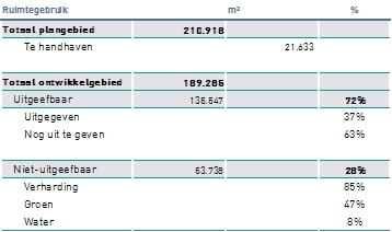 Binnen de exploitatiegrens is het ruimtegebruik vertaald naar onderstaande tabel.