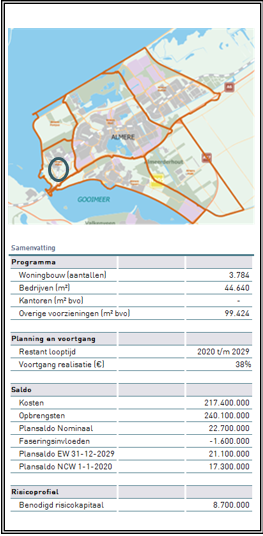 De kosten (€ 217,4 mln.) en opbrengsten (€ 240,1 mln.) hebben betrekking op de gemeentelijke grondexploitatie. Van de kosten en opbrengsten is reeds 38% gerealiseerd. De verwachting is dat het project 2029 is afgerond.
