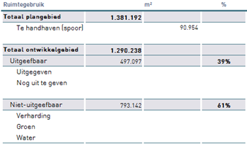 Binnen de exploitatiegrens is het ruimtegebruik vertaald naar de tabel
