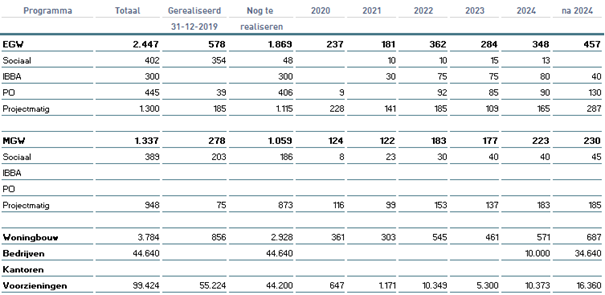 Tot 2026 wordt er bouw- als woonrijp gemaakt ten behoeve van de verschillende deelgebieden. Vanaf 2025 is er alleen nog maar sprake van budget voor het woonrijp maken van de EKO1, OKO en EKO2.