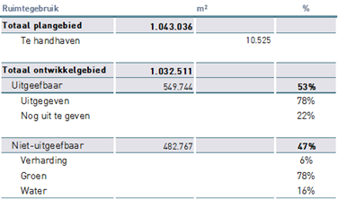 Binnen de exploitatiegrens is het ruimtegebruik vertaald naar de onderstaande tabel.