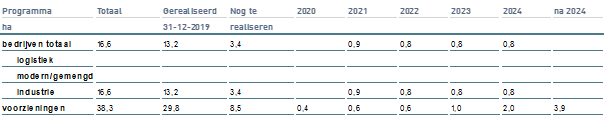 Bovenstaande tabel laat zien dat circa 43 ha. (78%) van het bouwprogramma (13,2 ha. industrie, 29,8 ha. voorzieningen) al is gerealiseerd.