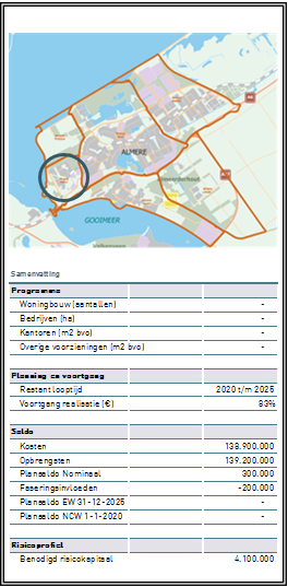 De bestemmingsplannen die de exploitatie mogelijk maken vallen onder de deelgebieden in Almere-Poort.