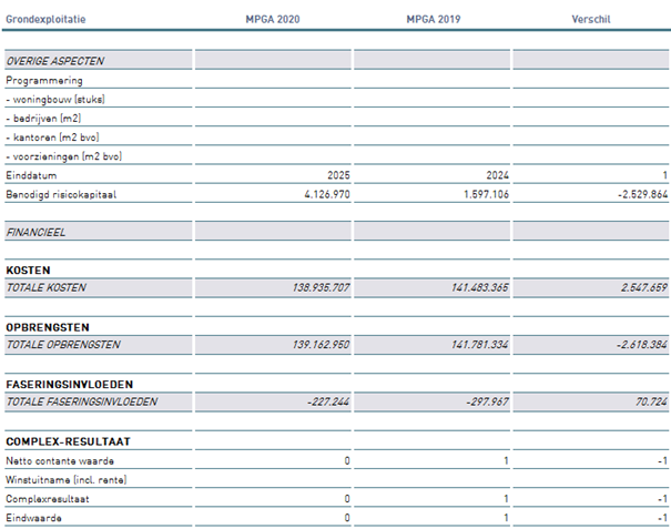 In dit hoofdstuk worden de belangrijke verschillen tussen de grondexploitatie MPGA 2020 en 2019 op hoofdlijnen toegelicht.