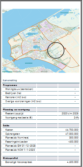 Het benodigd risicokapitaal van deze grondexploitatie bedraagt € 4,6 mln.